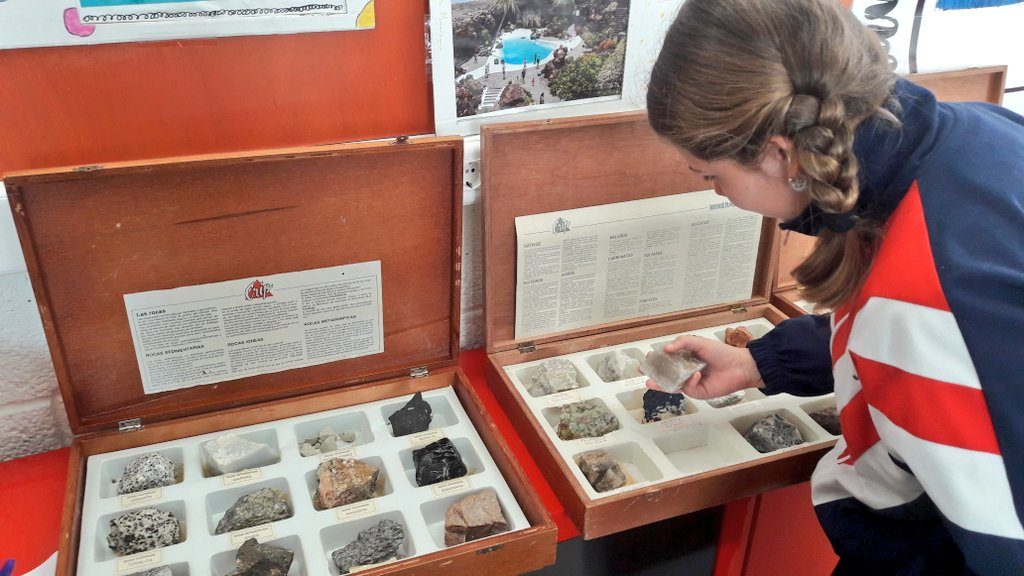 A lo largo de la semana trabajamos en el aula la teoría de las rocas y minerales como, por ejemplo, los tipos de rocas que existen dependiendo de dónde y cómo se formen, las diferentes características de los minerales como el brillo, el color, la forma, la dureza, la composición, utilidad, etc.